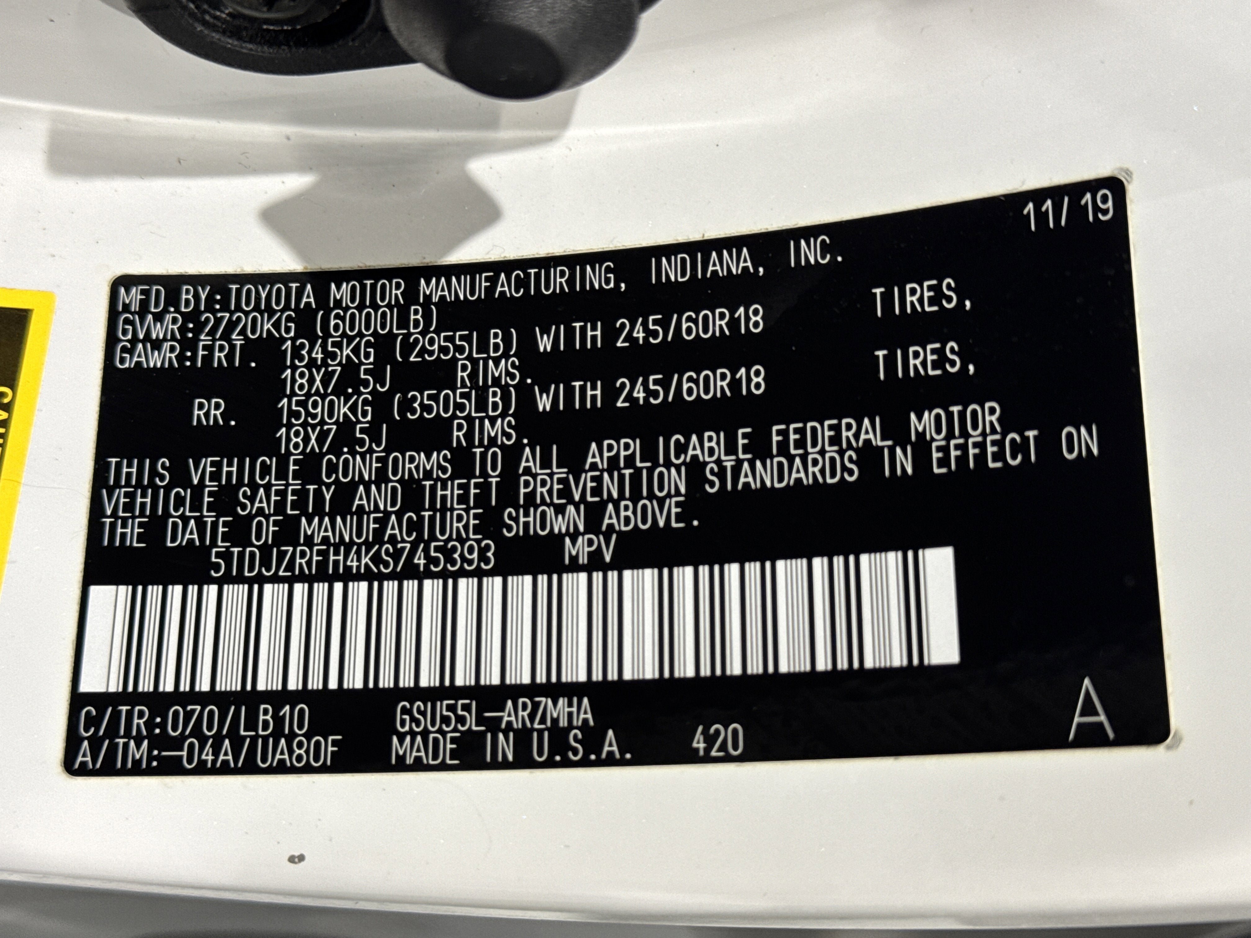 - Vehicle Name: Toyota Highlander